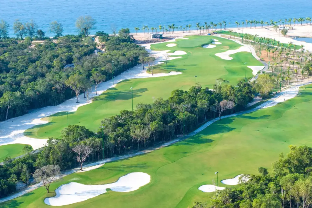 Eschuri Vung Bau Golf, nestled along the pristine Vung Bau Beach, is a masterpiece developed with the dedication of Sun Group and the craftsmanship of IMG – one of the world’s leading golf design and management corporations. Blending the cultural essence of Vietnam with the paradisiacal beauty of Phu Quoc Island, the course stands as part of an integrated golf complex boasting a prime riverside location that opens out to the vast sea.